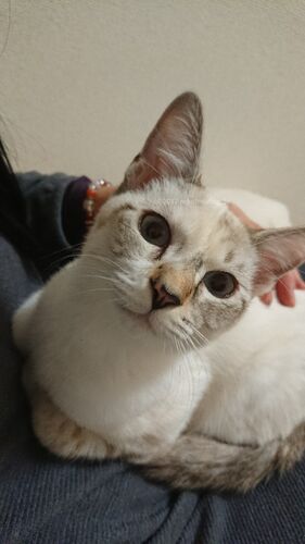 シャロン 私の膝の上にのってきたしばらくは動けないっっあら私のむちむちの太ももにちょこんと座るシャロン可愛い♪来た来た甘えん坊グリンやっぱりシャロンにチュッ私には無し〜シャロンとグリン今日も猫達に囲まれてまったり過ごしてますおまけグリンのい…